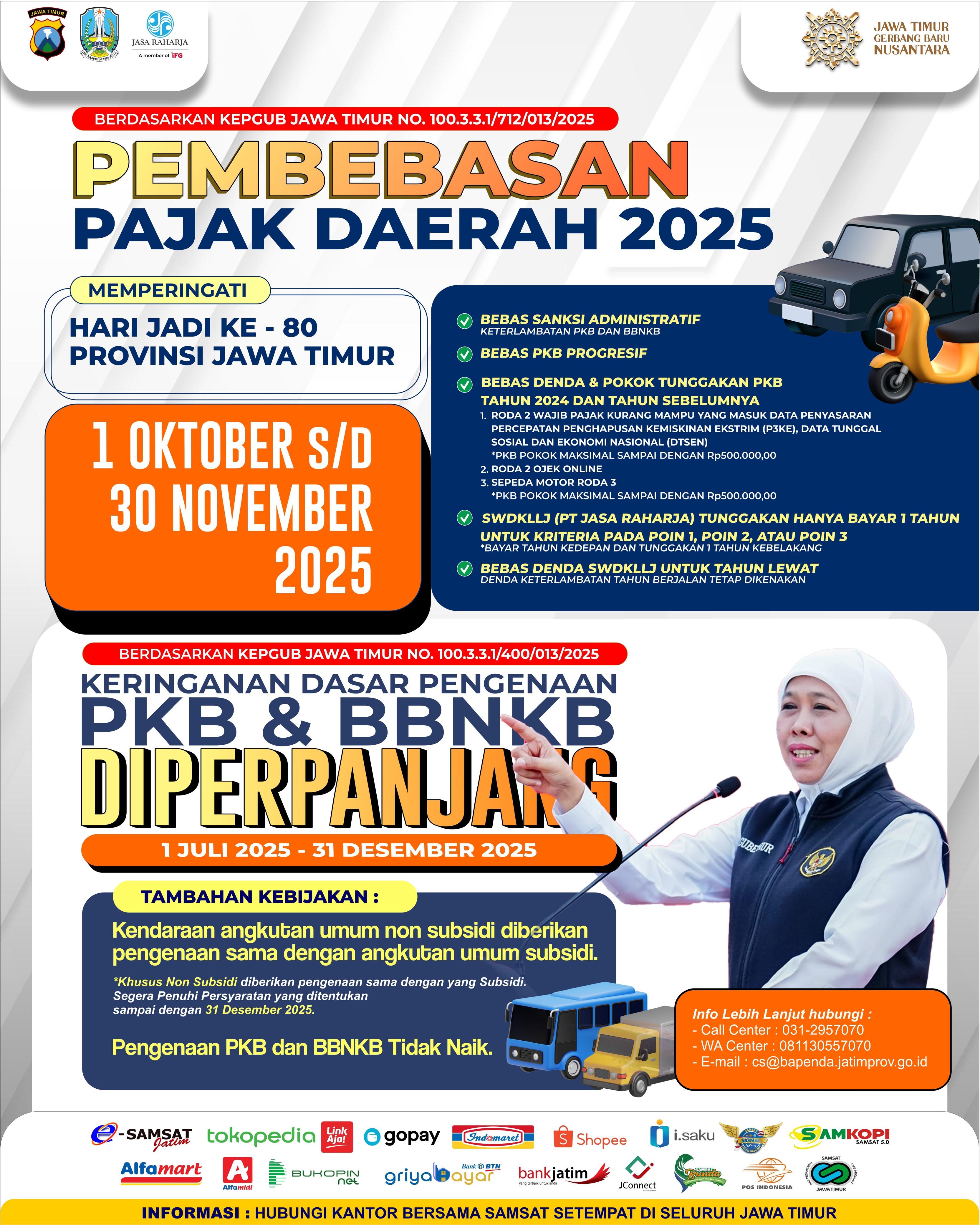 Ibu Gubernur Jawa Timur telah memberikan kebijakan yang sangat membantu masyarakat dengan membebaskan Pajak tahun lalu yang menyasar kepada Masyarakat Kurang Mampu dan Ojek Online