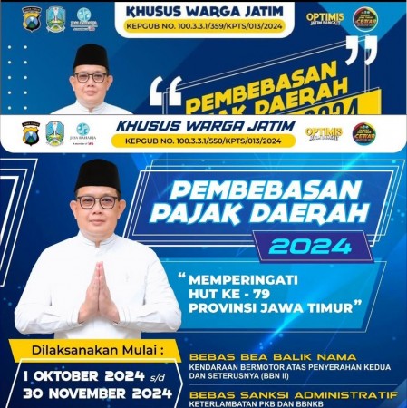 hai masyarakat jawa timur khsususnya masyarakat bondowoso. kami sampaikan kebijakan Gubernur Jawa Timur akan pemutihan memperingati hari jadi Jawa Timur.